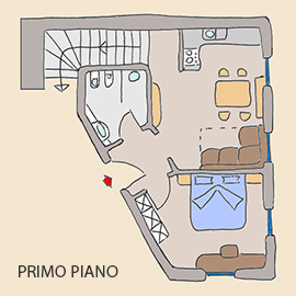 Cucina attrezzata completa di lavastovliglie, forno a microonde, frigorifero, bollitore, tostapane, pianto cottura elettrico a induzione e macchina per il caffè. Due moderne camere da letto matrimoniali arredate con mobili in legno antico (letti separabili), salotto con divano letto e TV, cassetta di sicurezza, 2 bagni con doccia, WC, bidet e accesso diretto al giardino.